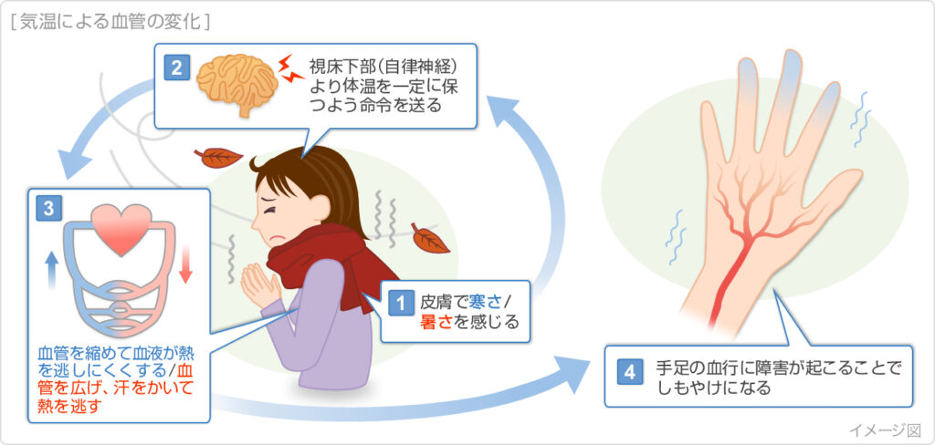 - 外出時は手袋・防寒をして冷風・乾燥から守る。
