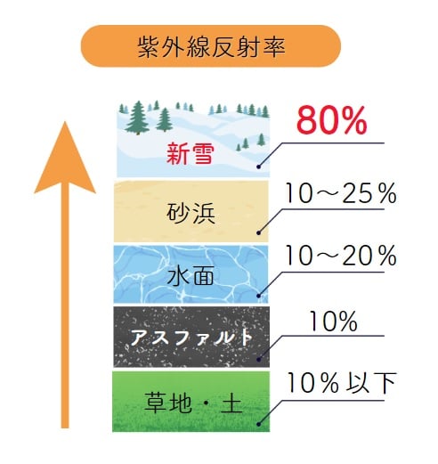 - 冬でも紫外線は存在し、雪などの反射によって強まることも。