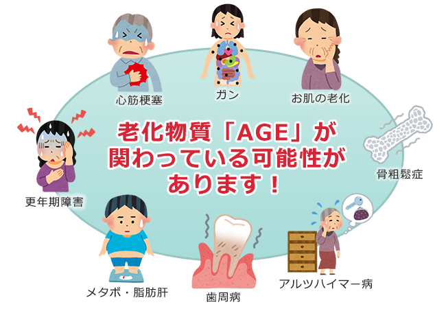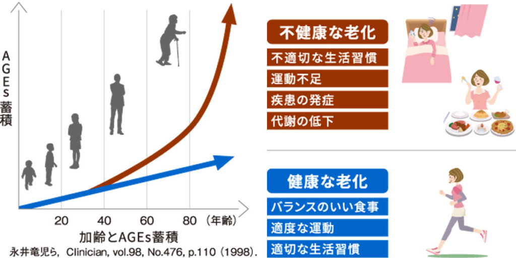 糖化と酸化ストレスという2つの老化要因が深く関わっています。