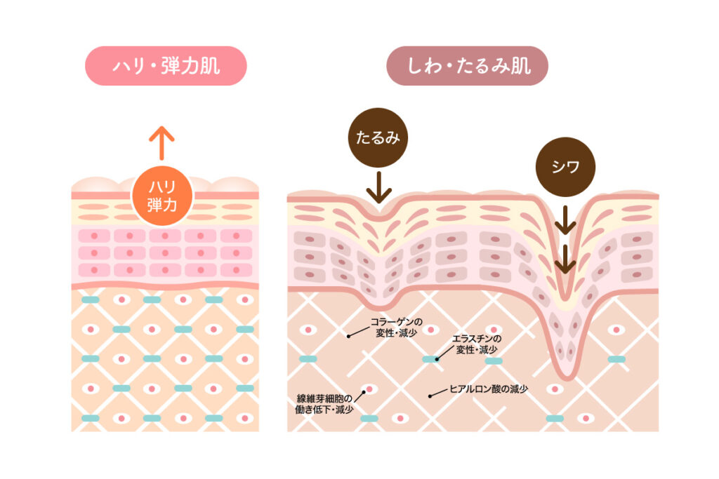 どちらもコラーゲンなどの肌たんぱく質を劣化させます。